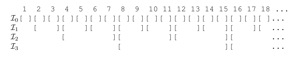 Starting from , we now define a sequence of intervals (in a reversed order), denoted